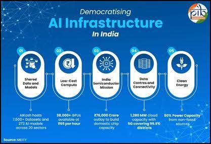 India is advancing the democratisation of Artificial Intelligence by expanding affordable access to compute power, shared datasets, digital infrastructure and AI skills through initiatives like the IndiaAI Mission and AIKosh. With widespread 5G connectivity, growing data centre capacity and strong policy support, the approach aims to enable inclusive innovation, strengthen public service delivery, reduce regional disparities and position India as a global leader in equitable and development-focused AI.