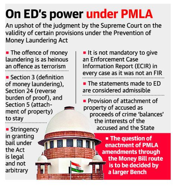 - The judge concluded that the ED can interrogate any person implicated in a case registered under the Prevention of Money Laundering Act (PMLA), 2002.