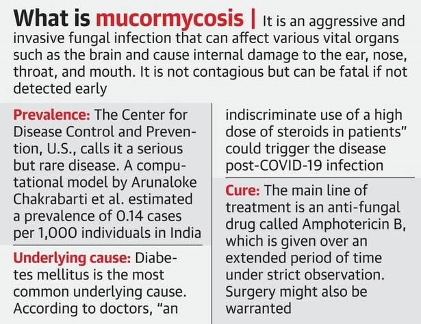 Context: The Union government has asked the States to declare mucormycosis, the fungal infection being reported in COVID-19 patients, an epidemic.