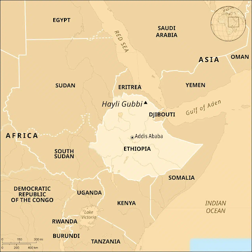 The Hayli Gubbi volcano in Ethiopia erupted violently after lying dormant for about 12,000 years.