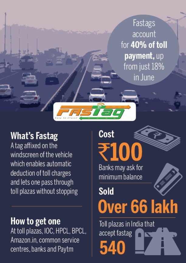 Context: Road Transport & Highways Minister has announced that FASTag is being made mandatory for all vehicles in the country from new year.