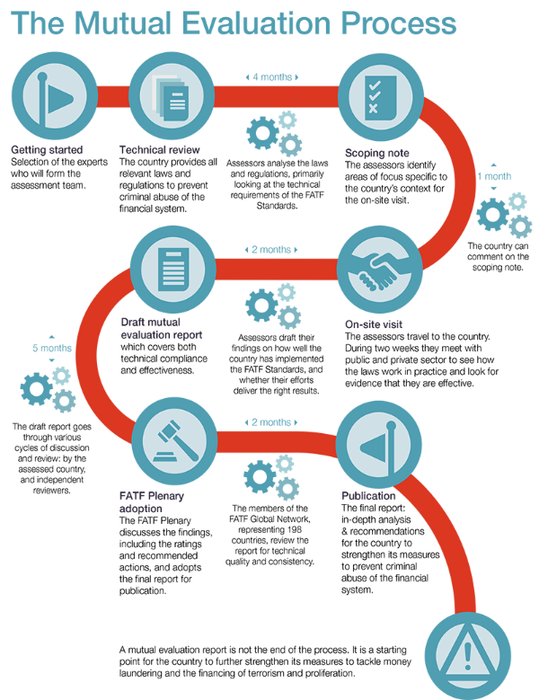 - It conducts regular peer-reviewed evaluations called Mutual Evaluations (ME) of countries to check their performance on standards prescribed by it. The reviews are carried out by FATF and FATF-Style Regional Bodies (FSRBs), which then release Mutual Evaluation Reports (MERs).