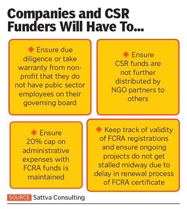 - Amendments add that the government may also restrict usage of unutilised foreign contribution for persons who have been granted prior permission to receive such contribution.