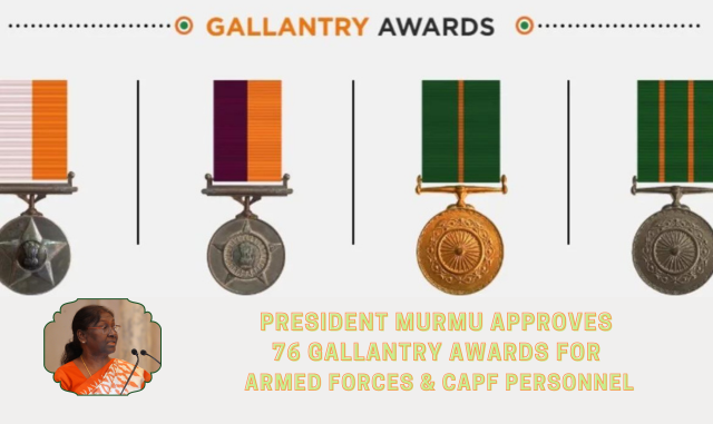 - President Droupadi Murmu has approved 76 gallantry awards, to personnel of the security forces, on the eve of the 77th Independence Day.