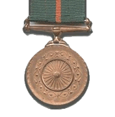 - Medal: Circular in shape and made of bronze, one and three-eighth inches in diameter, with rims on both sides. On the obverse of the medal shall be embossed a replica of Ashoka’s Chakra in the centre, surrounded by a lotus wreath. Along the rim, on the inner side, shall be a pattern of lotus leaves, flowers and buds. On its reverse shall be embossed the words “SHAURYA CHAKRA” both in Hindi and English, the two versions being separated by two lotus flowers.