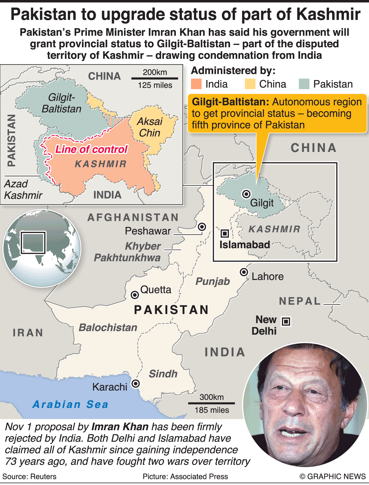 - India launched a new political map last November, which showed the Gilgit-Baltistan region as part of the new Union Territory of Ladakh.