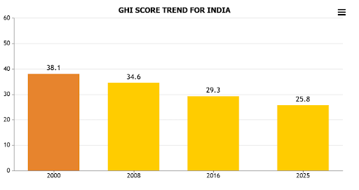After a period of significant gains, global progress against hunger has largely stalled. The world's GHI score of 18.3 in 2025 is only a marginal improvement from 19.0 in 2016.
