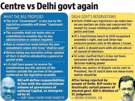 - The Centre, through its amendments, has given more power to the Lieutenant Governor (LG) than the elected government of the people of Delhi.