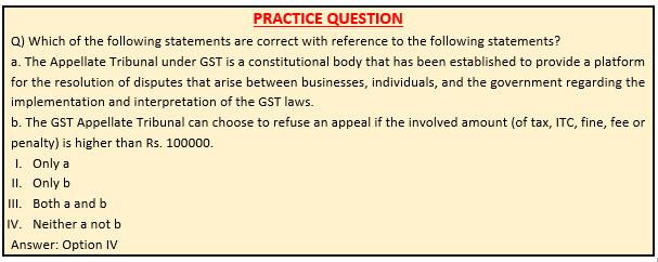 - The Appellate Tribunal under GST is a quasi-judicial body that has been established to provide a platform for the resolution of disputes that arise between businesses, individuals, and the government regarding the implementation and interpretation of the GST laws.