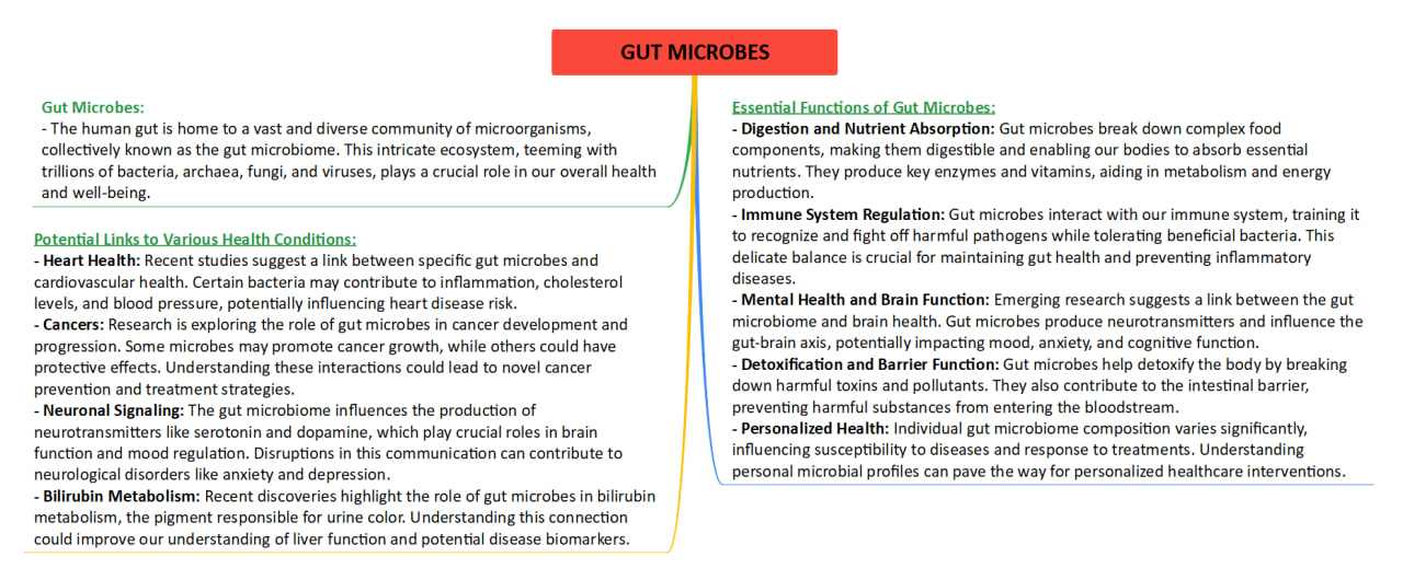 - The human microbiome consists of trillions of microorganisms in the digestive tract, influencing digestion, nutrient absorption, metabolism, immunity, and mental health.