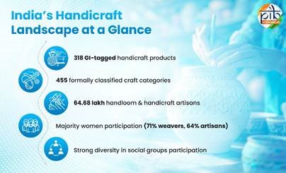 India’s handicraft sector is a vital cultural and economic asset, supporting nearly 65 lakh artisan, many of them women and preserving traditional skills through generations. It contributes significantly to rural livelihoods, export earnings, and social inclusion, particularly for SC, ST and OBC communities.