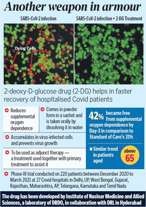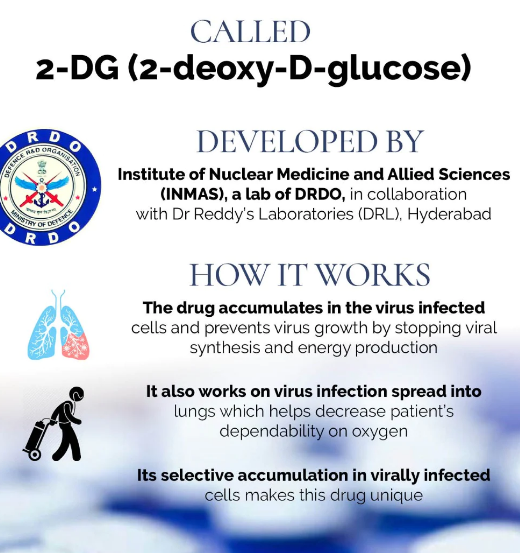 Context: Anti Covid drug 2-DG developed by DRDO in collaboration with Dr. Reddy’s Lab launched.