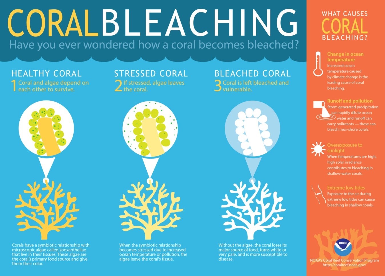 Coral bleaching is a process in which corals lose their colour because they expel or lose their symbiotic algae called zooxanthellae. These algae normally live inside coral tissues and provide the corals with food through photosynthesis and also give them their bright colours.