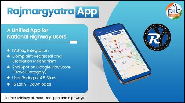 - Rajmargyatra, a citizen-centric mobile application aimed at enhancing the overall experience of commuters on national highways. Rajmargyatraserves as a digital travel companion, offering a wealth of information such as details about highways, toll plazas, nearby amenities, including petrol pumps, hospitals, EV charging stations, and even live weather updates.