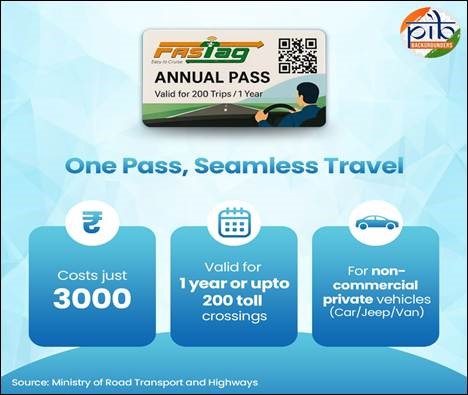 - FASTaghas revolutionized the country’s Electronic Toll Collection system with nearly 98% penetration and over 8 crore users.
