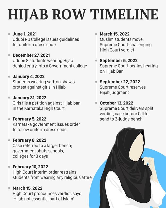 - The Supreme Court of India expressed a divided opinion in the Karnataka hijab ban case.