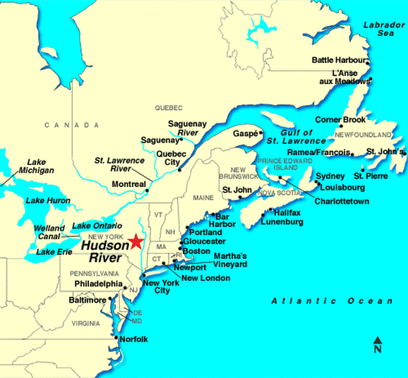 Explored by Henry Hudson (1609) vital for commerce during colonial & industrial eras |