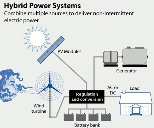 Hybrid energy systems with integrated storage enhance grid stability and provide a continuous power supply by addressing the inconsistency of renewable energy sources; meeting peak demand when solar power is reduced.