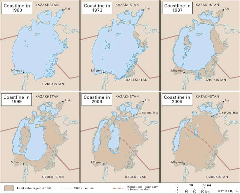 - Shrinkage of Western Basin: The western basin of the southern sea also experienced significant shrinkage, further contributing to the overall decline in the size of the Aral Sea.