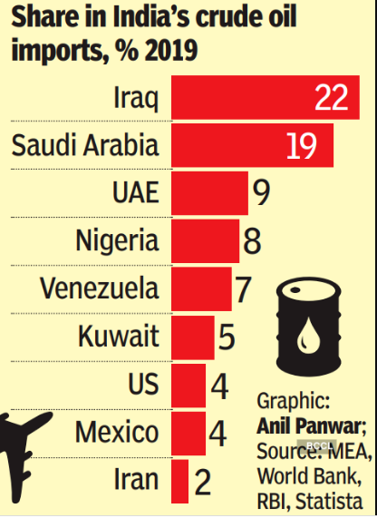 - A third of India’s oil imports come from Bahrain, Kuwait, Qatar, Oman, Saudi Arabia, and the UAE, also known as Gulf Cooperation Council (GCC). Qatar is also India’s leading supplier of LNG. In other words, the bulk of India’s energy requirements is taken care of by the six GCC countries.