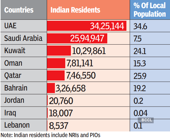 - Indians make up more than a third of the UAE's population. In the Gulf, there are 89 lakh Indian citizens.