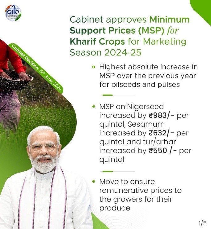 - The MSP for Kharif Crops for Marketing Season 2024-25 has been increased to provide fair prices to farmers for their produce.