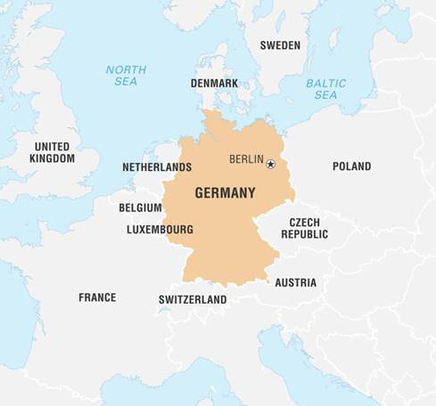 - France, Luxembourg, Belgium, and the Netherlands in the west.