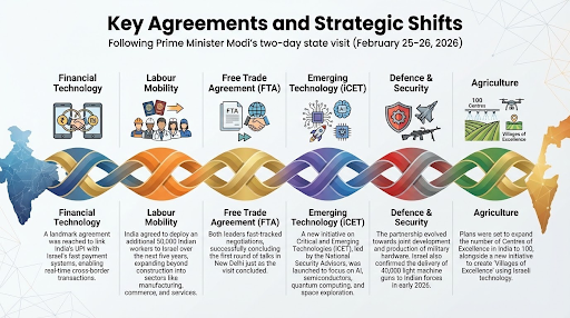 India and Israel elevated their bilateral relationship to a "Special Strategic Partnership for Peace, Innovation & Prosperity" during the Indian PM's February 2026 state visit to Israel.