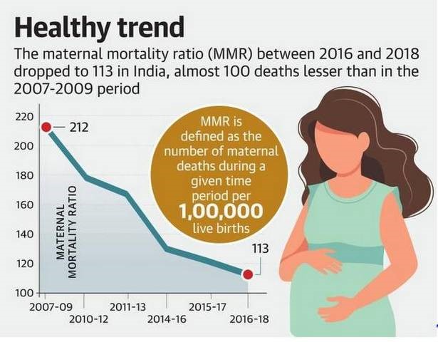 The Maternal Mortality Ratio (MMR) in India has declined to 113 in 2016-18 from 122 in 2015-17 and 130 in 2014-2016.