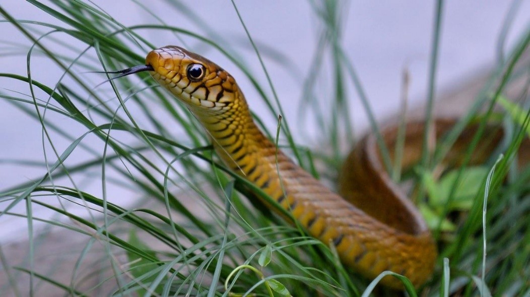 The Indian rat snake, locally known as Manja Chera or Karinchera in Kerala, is a non-venomous, fast-moving reptile that plays a vital ecological role by controlling rodent populations, especially in farmlands. It is protected under Schedule I of the Wildlife (Protection) Act, 1972, and holds the IUCN status of Least Concern.
