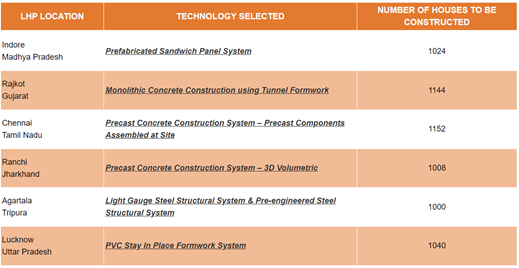 - Six Technology providers have been selected through rigorous online bidding process for construction of Light House Projects (LHPs) at six different locations in six states.