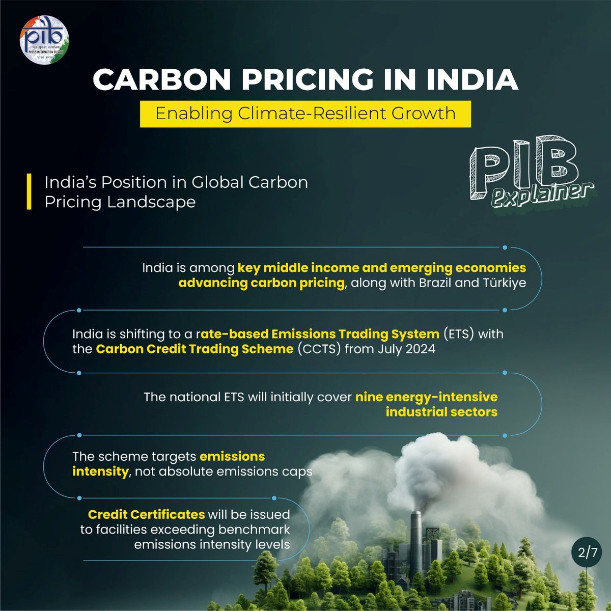 The CCTS, notified in 2023 under the Energy Conservation Act, 2001, is India’s national framework to develop a compliance-based carbon market. It will set emission-intensity benchmarks for key sectors and create a national registry and trading platform managed by the Bureau of Energy Efficiency (BEE) and the Power Ministry.
