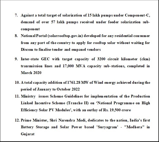 - In line with Prime Minister’s announcement at COP26, Ministry of New and Renewable Energy is working towards achieving 500 GW of installed electricity capacity from non-fossil sources by 2030.