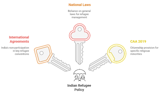 India’s refugee dilemma reflects a tension between humanitarian traditions and national security concerns. Without a formal refugee law, policies are ad-hoc, with selective treatment, as seen in the CAA and Rohingya securitization. This raises debates on India’s commitment to equality, secularism, and its role in upholding international human rights.