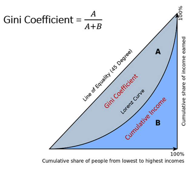 - The Gini-coefficient is a statistical measure of inequality that describes how equal or unequal income or wealth is distributed among the population of a country.