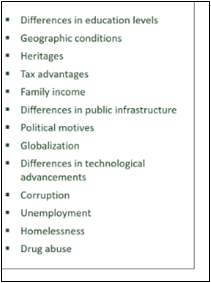 - Tax Evasion- undue concentration of incomes in a few hands.