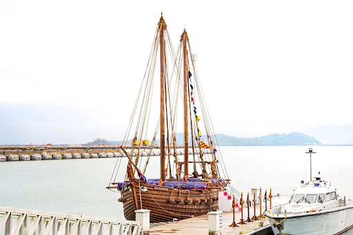 Based on a 5th-century ship design depicted in a painting from the Ajanta Caves. |