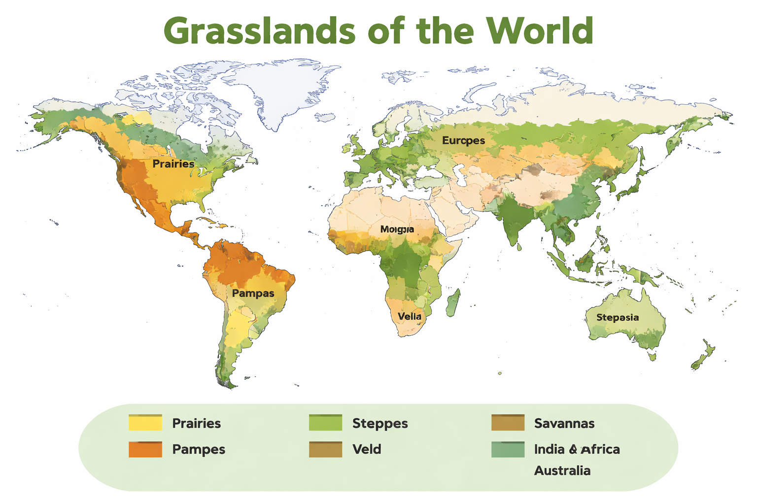 Temperate Grasslands: Found in mid-latitude regions, these grasslands include the Prairies of North America, the Steppes of Eurasia, and the Pampas of South America, and are known for extensive grass cover and fertile soils.