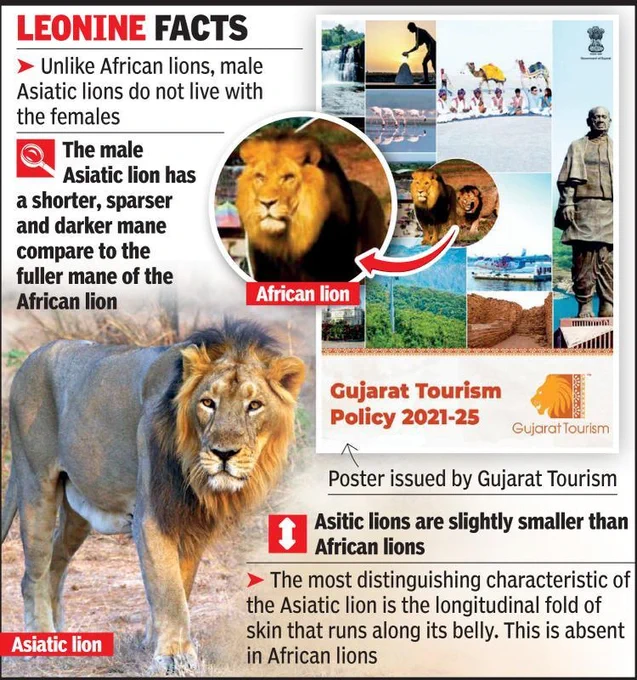 About Barda Wildlife Sanctuary: ● Barda Wildlife Sanctuary is situated in Gujarat. ● It shows 2 rivers the Bileshvary River & the Joghri River along with 2 dams Khambala & Fodara. ● Ethnic groups like the Maldharis, Bharvads, Rabaris, & Gadhvis live in this area. ● In 1979, the state government launched the Gir Barda Project to make Barda a 2nd home for the Asiatic lion. Key Facts about Asiatic Lions: The Asiatic lion is scientifically known as Panthera leo persica. It is native to the Gir landscape of Gujarat. It is one of 5 pantherine cats found in India. Conservation Status: ● It was an Endangered on the IUCN Red List. But the IUCN has revised the Asiatic lion status to vulnerable in 2024 ● The Wildlife (Protection) Act 1972: Schedule I ● CITES: Appendix I |