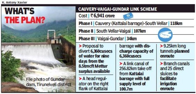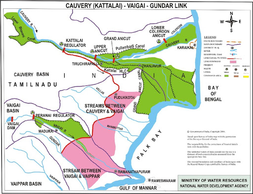 Context: Karnataka will soon approach the Supreme Court with an original suit against Tamil Nadu’s decision to unilaterally go ahead with the Cauvery-Vellaru-Vaigai-Gundar link project to utilise excess water in the Cauvery basin and transfer it to its southern districts.