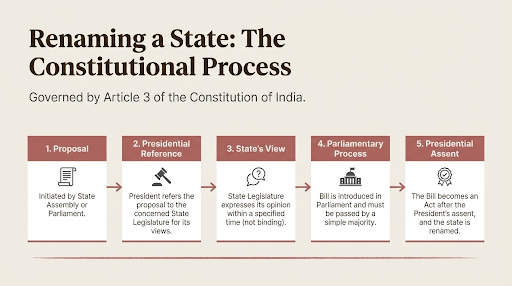 Presidential Assent: Once passed by both Houses, the Bill is sent to the President for final assent. Upon signing, the Bill becomes law, and the state is officially renamed.