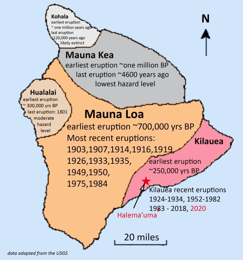 Historically, it is the most active of the five volcanoes that together form the Big Island of Hawaiʻi.