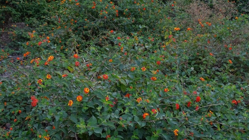 Lantana camara is an invasive alien plant species native to Central and South America. Introduced in India in the 18th century, it has aggressively spread across tropical regions, displacing native flora by releasing allelochemicals and forming dense thickets. It poses a threat to biodiversity but also holds potential for socioeconomic use through biomass-based products like fuelwood, furniture, and organic compost.