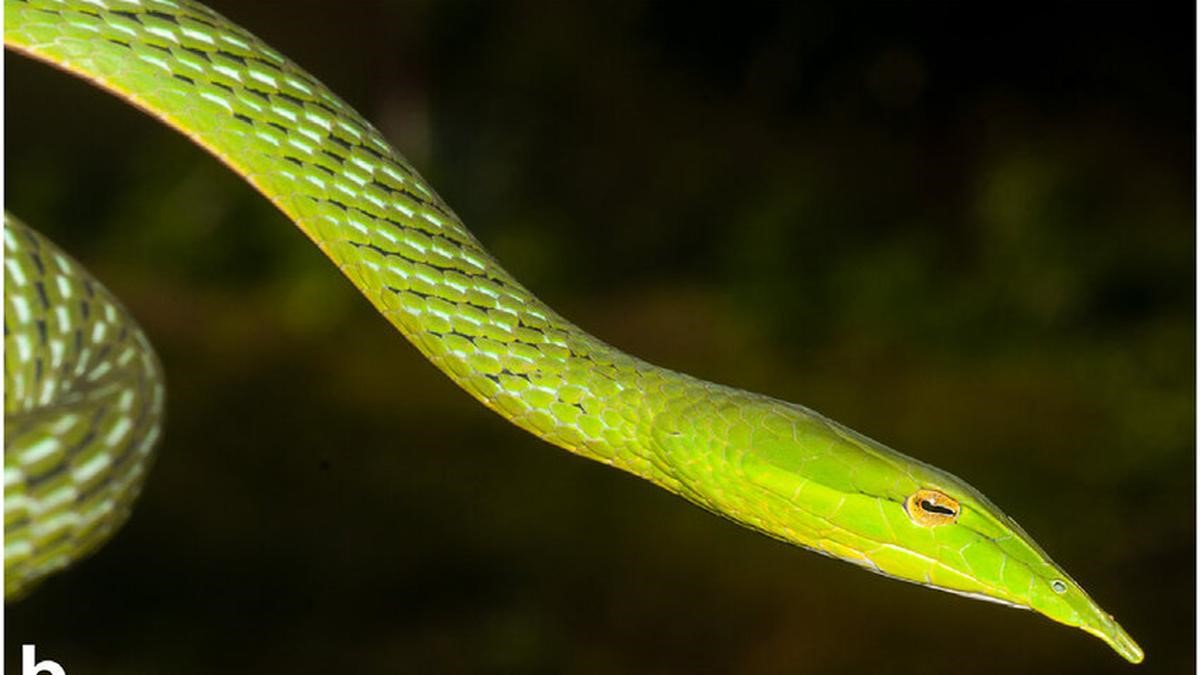 A rare Long-snouted Vine Snake that is Ahaetulla longirostris was recently rediscovered in the Dudhwa Tiger Reserve, Uttar Pradesh.
