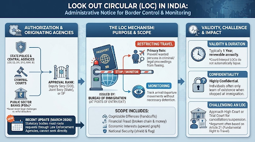 Challenging an LOC: An individual can approach the High Court or the trial court concerned to seek the cancellation or suspension of an LOC, often arguing it violates their fundamental right to travel under Article 21.