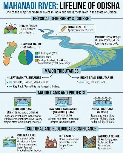The Mahanadi water dispute is a long-standing inter-state conflict between Odisha and Chhattisgarh over the sharing, management, and use of the waters of the Mahanadi River.