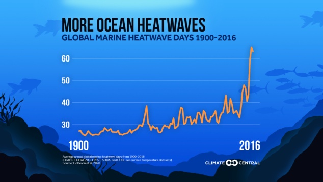 - The Intergovernmental Panel on Climate Change (IPCC) report on Global Warming of 1.5 °C is "virtually certain" that the global ocean has absorbed more than 90% of the excess heat in our climate systems, the rate of ocean warming has doubled, and MHW events have doubled in frequency since 1982.