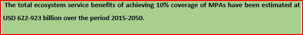 PRACTICE QUESTION Q) The total ecosystem service benefits of achieving 10% coverage of MPAs have been estimated at USD 622-923 billion over the period 2015-2050. Discuss. (150 words) |