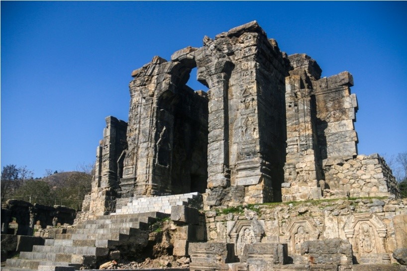The Martand Sun Temple was built by the third ruler of the Karkota Dynasty, Lalitaditya Muktapida, in the 8th century CE.