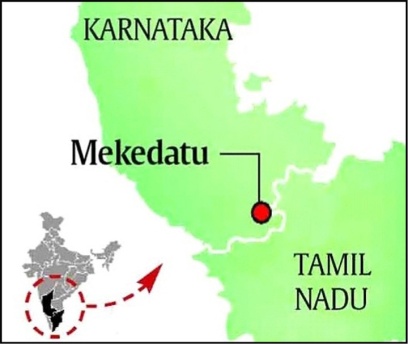 - Karnataka wants to construct a concrete gravity dam at Mekedatu with a storage capacity of 67.16 tmcft. The project was first announced in 2013.